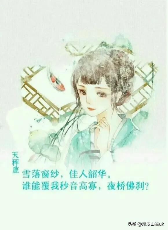 天秤座(9月23日-10月23日)天秤座的人通常温和、公正、善良,喜欢追求和平和和谐。他们善于协调和调解,对于公平和正义有着特别的重视,喜欢追求美好的事物和美好的生活。天秤座的人通常具有优雅和艺术的气质,对于美感和审美有着特别的鉴赏能力。