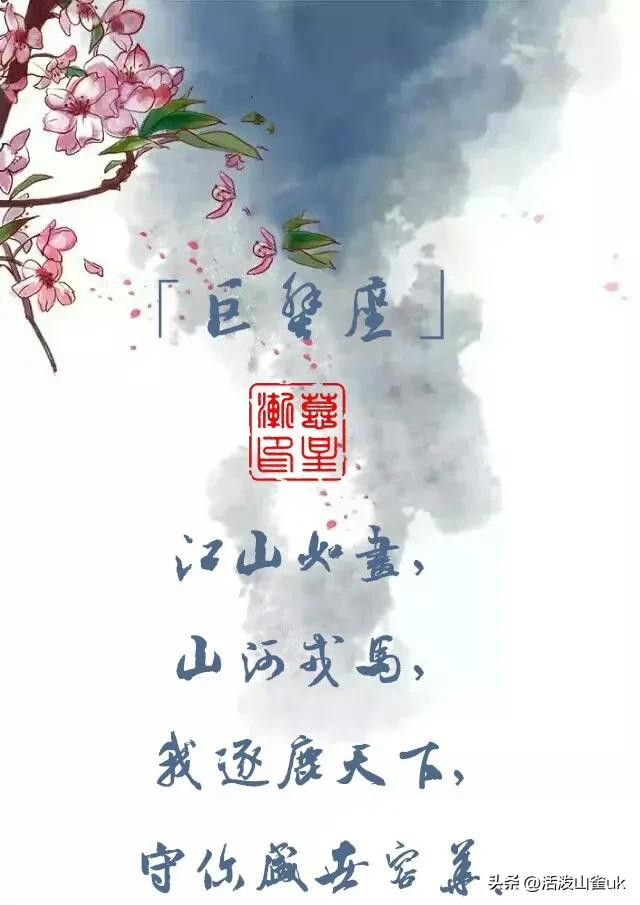 巨蟹座(6月22日-7月22日)巨蟹座的人通常性格温和、善良、敏感,对于家庭和亲情有着特别的情感。他们善于照顾他人,乐于助人,对于家人和朋友都十分关心和照顾。巨蟹座的人通常情感丰富,喜欢追求安全感和归属感,对于传统和习俗有着特别的重视。
