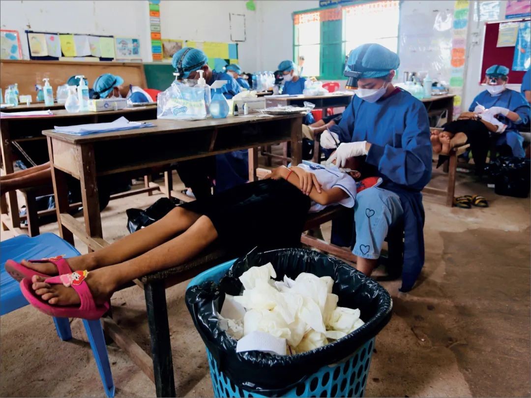 在柬埔寨的Aung Run小学,一名牙科医生和毕业年级的牙科学生自愿参加了一场牙科检查活动。这个临时的牙科检查室是由天主教救济服务(CRS)和One-2-One这两个非政府组织临时设立的。小学生的牙齿由牙医检查和修复。自2019年以来,One-2-One每年进行两次牙齿健康筛查,由CRS健康儿童项目提供财政支持和协调工作。牙科健康是CRS领导的联合倡议之一,旨在支持农村和贫困群体儿童的口腔保健需求。该项目深受当地学校和家庭的欢迎,感谢CRS柬埔寨小组和新加坡Dr Suresh Nair的协助。