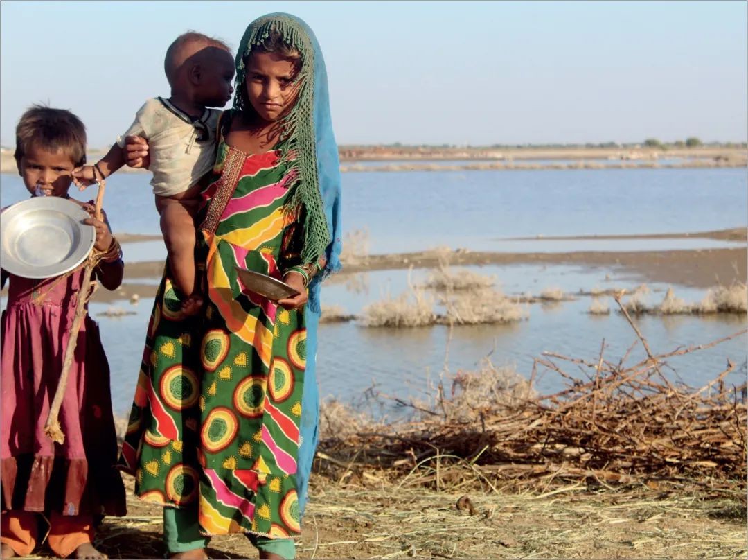 2022年,巴基斯坦遭遇毁灭性洪灾。这张照片拍摄于巴基斯坦南部丘多市(Jhudo)的一个洪水救援营地,照片中的是一个名为Rani的小女孩和她的弟弟妹妹。几年前,孩子们刚失去了母亲,洪水和疟疾爆发后,他们又失去了父亲。虽然有亲戚给他们提供帮助,但这个小女孩现在是弟弟妹妹的主要照顾者。洪水带来的破坏导致这家人住在救济营,被迫寻求支持。尽管她的家人经历了很多困难,Rani也还是充满希望,她期待着积水田地清理干净之后的情况改善。目前,巴基斯坦2022年的洪水还在继续影响其国内一些最贫困地区的诸多弱势群体的福祉和生计。