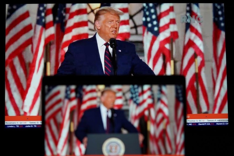 这张2020年8月27日拍摄的视频画面显示,特朗普在白宫南草坪发表演讲接受共和党总统候选人提名。(图源:新华网)