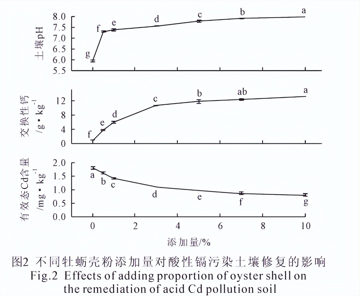 酸性土壤中会产生大量的重金属成分,这种重金属元素会使得土壤、地下水和动植物遭到毒害,影响生长。与铝离子类似,牡蛎壳粉富含钙元素,施用后会与土壤中的重金属发生沉淀反应,生成难溶的盐类化合物,减少了重金属离子的可溶性浓度,降低了其对土壤和植物的毒性。
