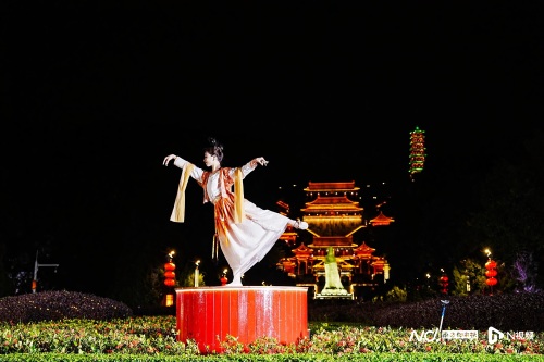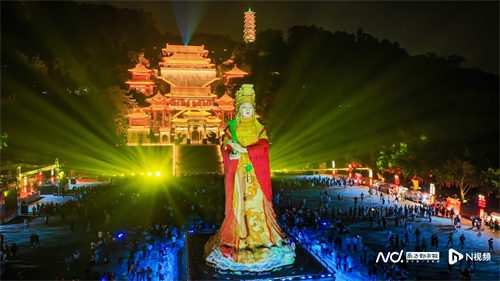 伴着夜色,演职人员在南沙天后宫景区内翩然起舞。