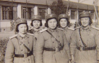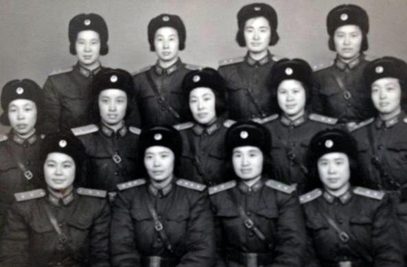 1955年冬刚刚换上新式帽徽、领章、肩章和武装带的女尉官合影,她们穿的还是50式冬服。