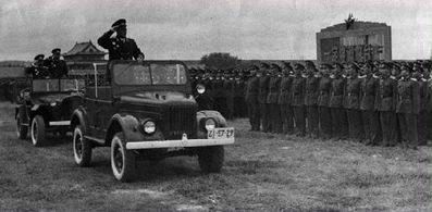 1956年春,罗荣桓元帅、谭政大将、萧劲光大将视察汉口步兵学校。