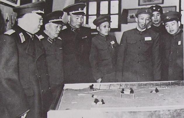 这张照片中,罗帅和谭、萧等人身着55式冬服,佩戴新式帽徽、肩章、领章,当地驻军仍穿50式军服,佩戴50式帽徽和胸章。