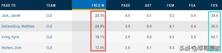 作为前锋的本内特,与队友贾瑞特-杰克(占比为28.3%)、马修-德拉维多瓦(占比为24.8%)、凯里-欧文(占比为18.1)、迪昂-维特斯(占比为12.6)传球率较多,值得注意的是,这四位全部是后卫,并且与马修-德拉维多瓦和欧文之间的助攻率为0,这说明他的传球还有待提高,也进一步说明了在传球方面的球商是有一定差距的。这个赛季场均0.3次的助攻数少之甚少,与球迷期待的差距也太大了。