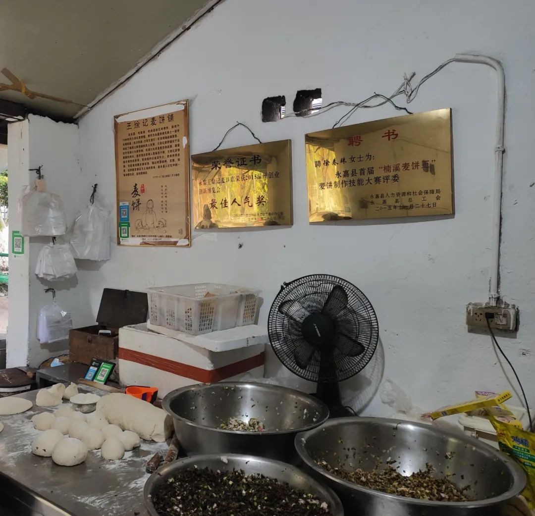 最早的时候,他们的麦饼摊开在渡口旁,远行的人带上麦饼后乘舟沿楠溪江南下至温州。随着交通的发展,从渡口搬到公路边,这家店开了30多年。“以前孩子小,我们如果出去打工没人照顾他们,就留在家做麦饼。现在儿女已经成家,小孩子都好几岁了。”老板欣慰地说。靠做麦饼,夫妻俩供家里3个孩子读完了大学。