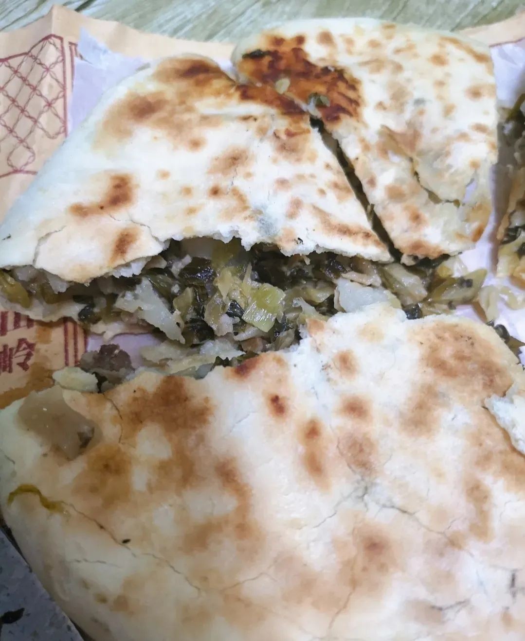 开店的夫妻俩是沙头镇石柱村人,自己辟园种菜,就地取材,咸菜、梅干菜、萝卜丝分别搭配肉类,店里主打3种馅料,每一道原材料都是老板娘手工腌制,揉面的功夫更久,刚烤出来的饼香气四溢,这种淳朴的味道也征服了许多人的胃,CCTV-4《远方的家》栏目就曾造访这家店。