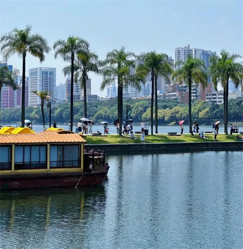 南湖公园是南宁市民休闲的好去处。这里有碧波荡漾的湖水、绿树成荫的小道,还有热闹的游乐场和宁静的茶馆。游客们可以在这里划船游湖、欣赏音乐喷泉等娱乐活动,感受城市的繁华与宁静。