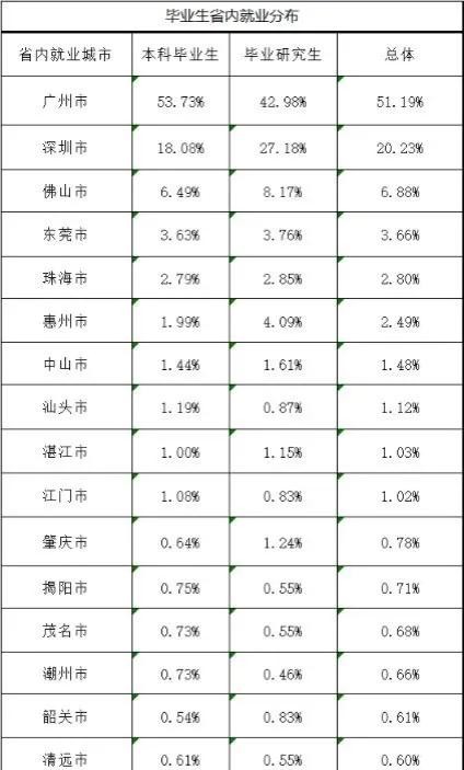 从图中可以看出来,广东工业大学的毕业生大部分都是留在广东的。同时这也从某种方式说明了广东工业大学在广东的认可度,校友资源很集中在广东。