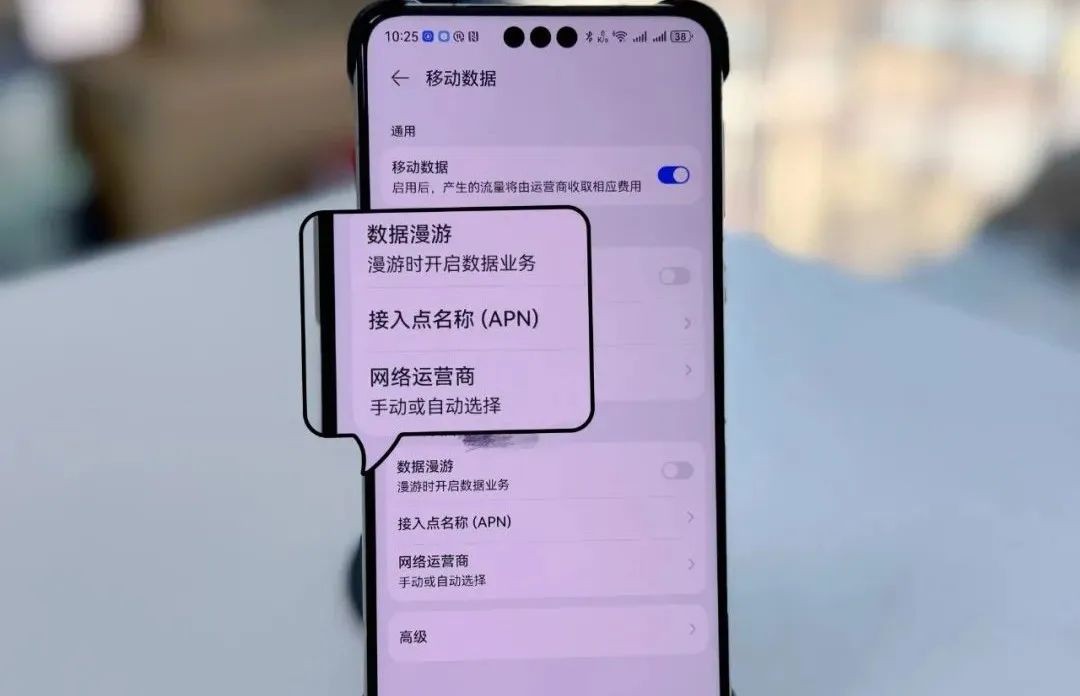 探索移动数据设置,只需轻触屏幕进入“移动数据”选项。在这里,您将发现一个丰富的功能菜单。请继续深入,直至您的目光落在“接入点名称(APN)”这一关键选项上。点击它,即刻开启个性化设置之旅,让您的网络连接更加得心应手。