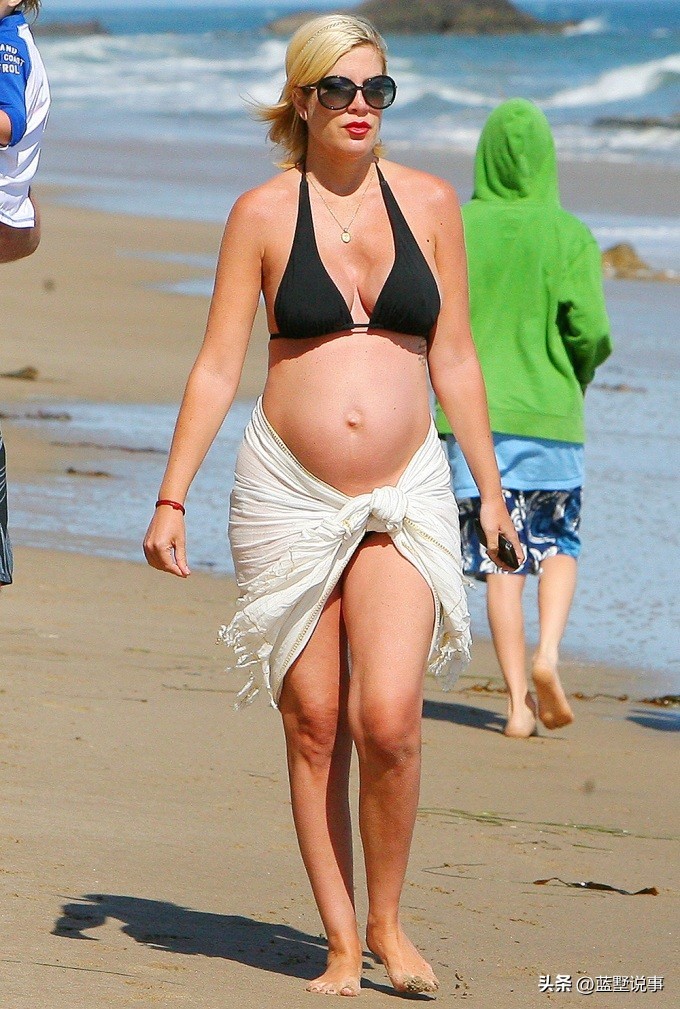 海滩,身穿比基尼的美国怀孕明星,有一位四十多岁依然自信满满