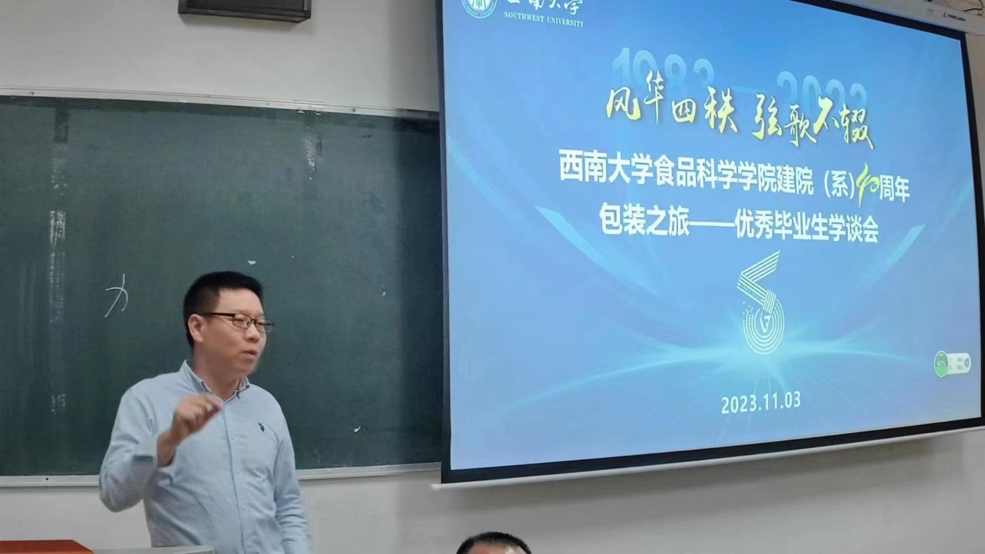 李旭锋代表学校党委和行政致辞。他表示,40年前,原西南农学院成立食品学系,在农业农村部部属农业院校中率先建立“农产品加工及贮藏工程”学科,从此西部食品教育拉开序幕;40年来,学院师生栉风沐雨,在人才培养、科学研究、服务社会、文化传承创新和国际交流合作等方面实现跨越式发展;40年间,学院春风化雨,躬耕不辍,培育万千栋梁;40周年,是食品科学学院发展史上一个重要的里程碑,他希望食品科学学院继续砥砺奋进,开创新的辉煌。