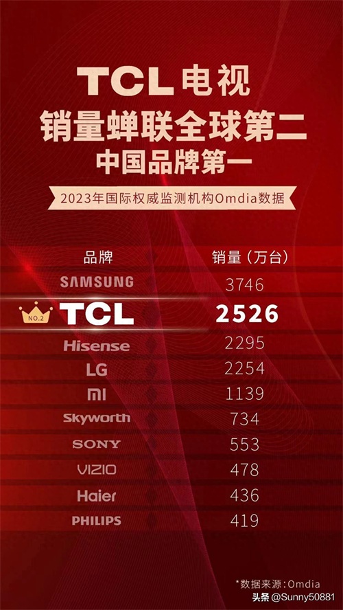 TCL电视:全球第二,中国品牌第一,品牌实力无可比拟!