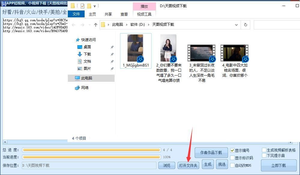 下载完后,我们点击“打开文件夹”可以直接预览视频
