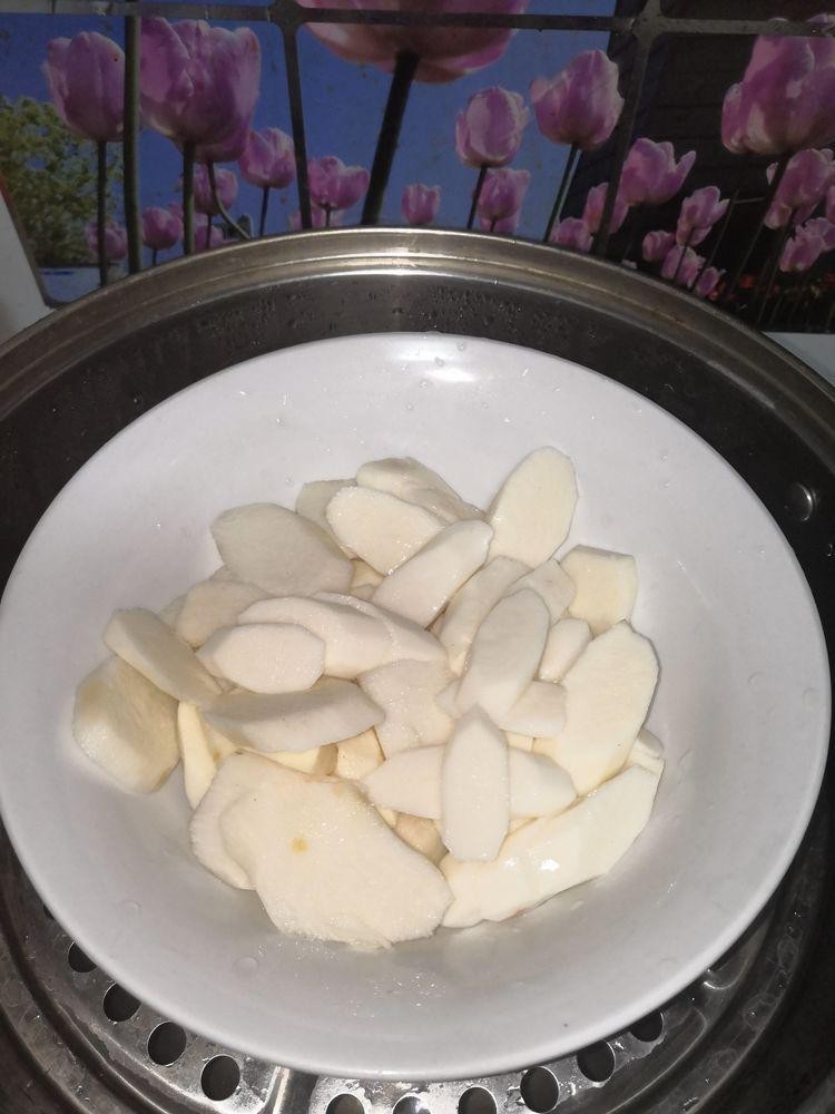 上蒸锅蒸15分钟,把它蒸到熟软。