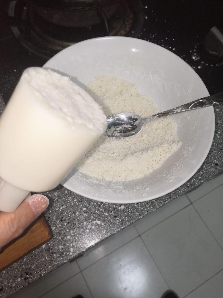 加白糖和奶粉适量,家里没有奶粉,我加的是椰子粉,味道也不错呢。