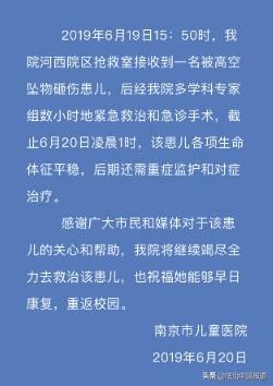 南京女童被高空坠物砸中头部,警方:系楼上8岁男童高空抛物所致