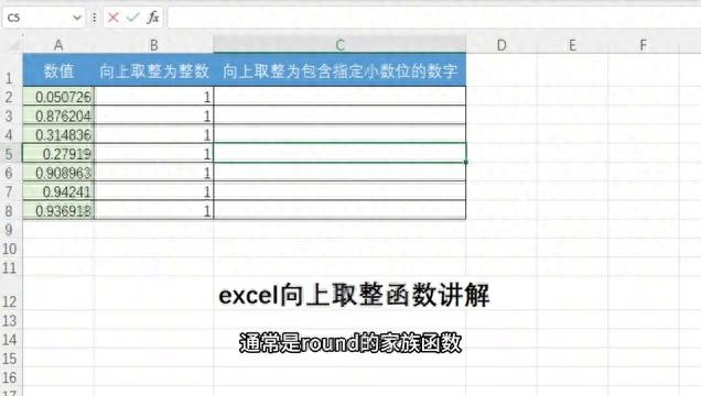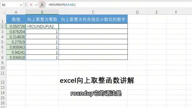 大家好,这里是Excel教程学习,今天来了解一下Excel向上取整函数的讲解。在Excel表格中用于取整的函数通常是round的家族函数,这里round是对数值进行四舍五入,rounddown是向下舍入数字,roundup是向上舍入数字。这里就可以输入roundup公式来进行a列数值的向上取整,这里可以向上取整为整数,也可以向上取整为包含指定小数位的数字。
