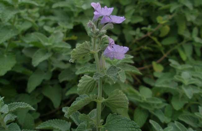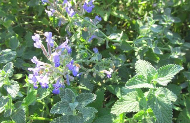 2、猫薄荷:猫薄荷茎直立,叶片卵状至三角状心形,基部叶有柄或近无桶,轮伞花序,小坚果三棱状卵圆形,花期6~8月,果期7~9月。