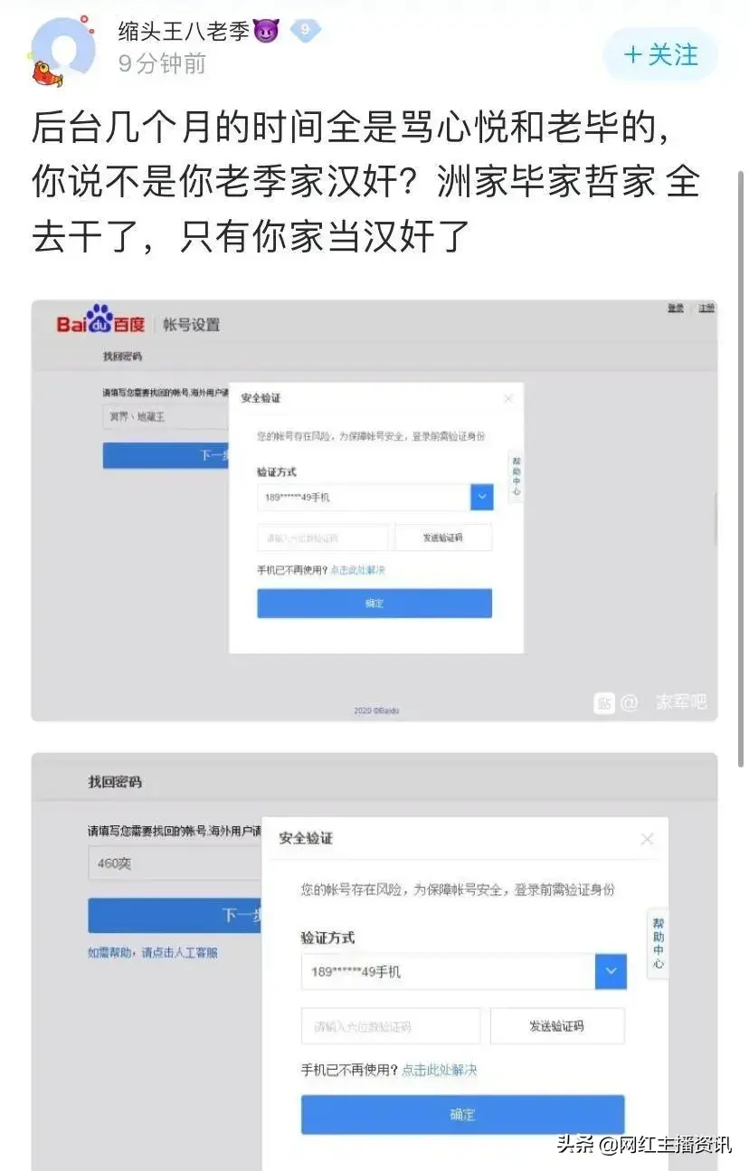 不过,虽然他极力否认是自己,粉丝扒出了两个账号绑定的后台手机号都是一样的,怒斥其:后台几个月的时间都是骂阿哲和老毕的,还说不是你老季家XX?洲家、毕家、哲家都去干仗了,只有你家当这个了!