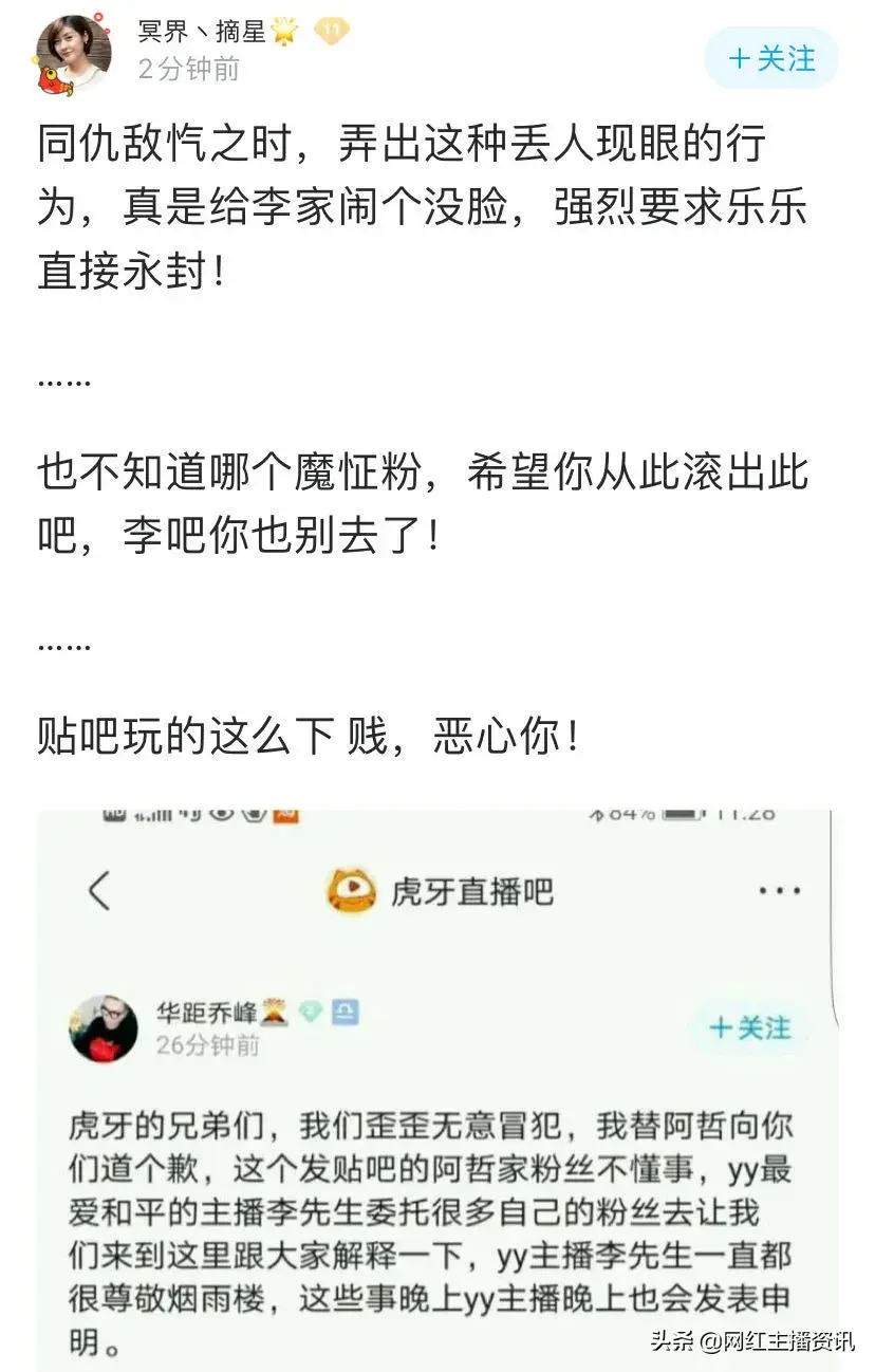 去虎牙道歉的老李家粉丝也挺逗,发帖称:虎牙的兄弟们,我们无意冒犯,我替阿哲向你们道歉。YY主播李先生一直都很尊敬烟雨楼,这些事主播晚上也会发表声明。因为这个发帖道歉的是李家军的主力,所以引起一众YY粉丝的不满,现在已经被贴吧屠版骂懵了!