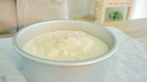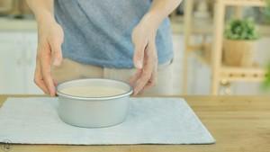 9、倒入6寸蛋糕模具中,约七分满。注意模具不要倒太满,预留一部分空间供米糊膨胀。