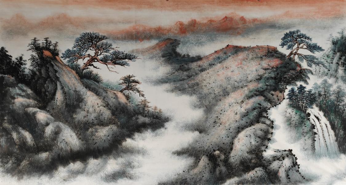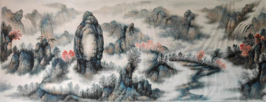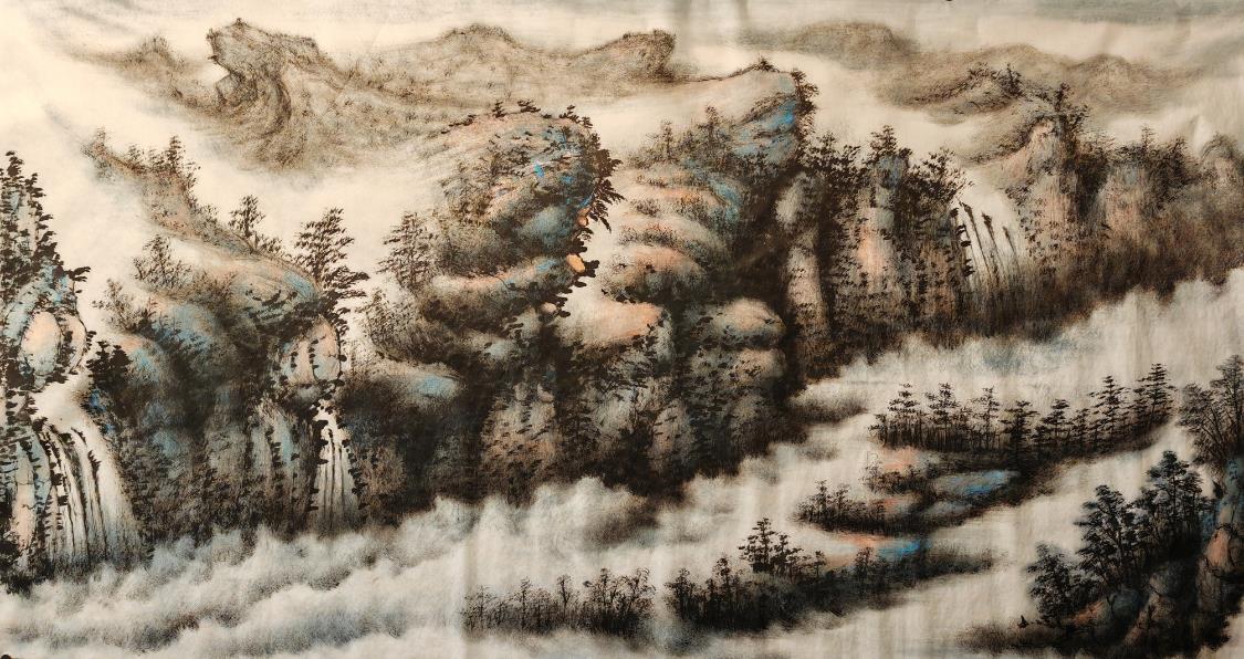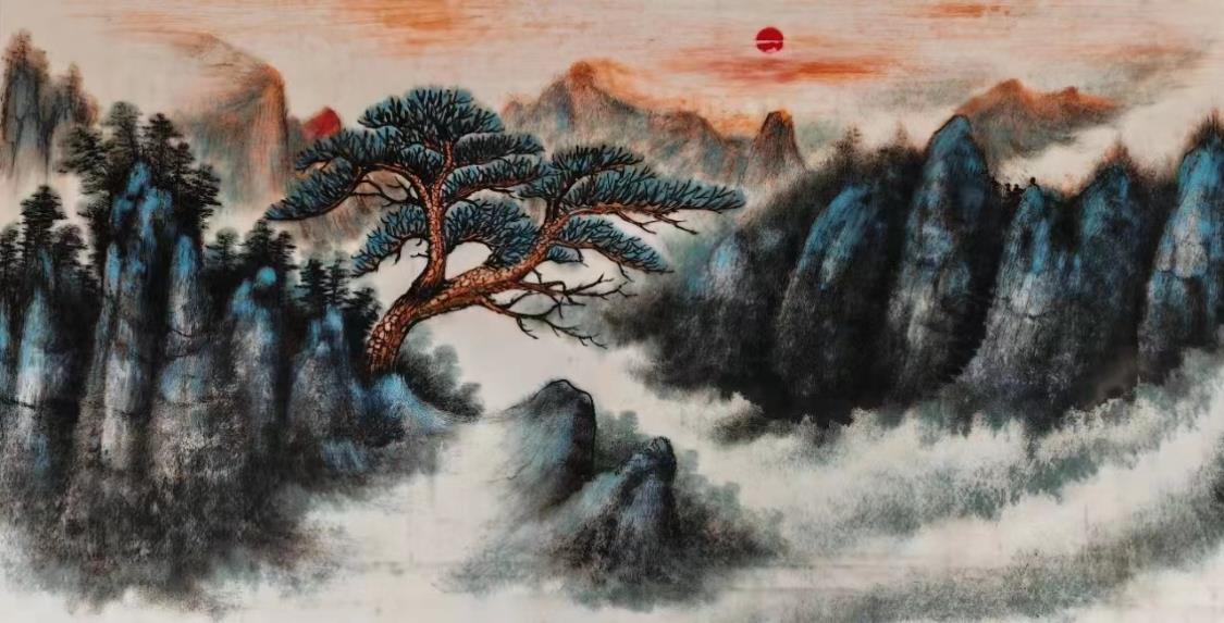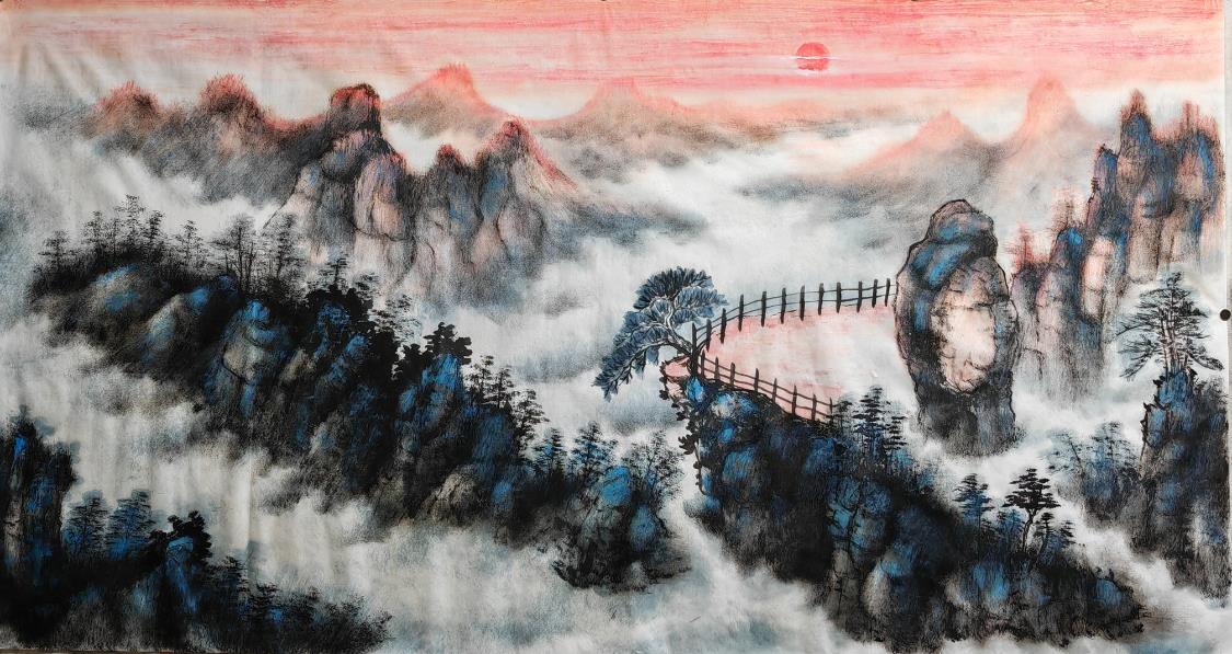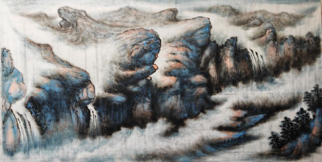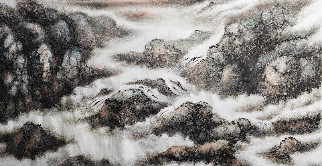 章国兴老师的作品汲取了传统画的精髓,并通过创新赋予了新的生命力。他继承了古人笔墨韵味传统,同时融入了现代审美与情感体验。章国兴善于运用笔墨、色彩和构图的变化,将传统的山水、花鸟等题材注入了当代气息,使作品更富有现代感和观赏性。