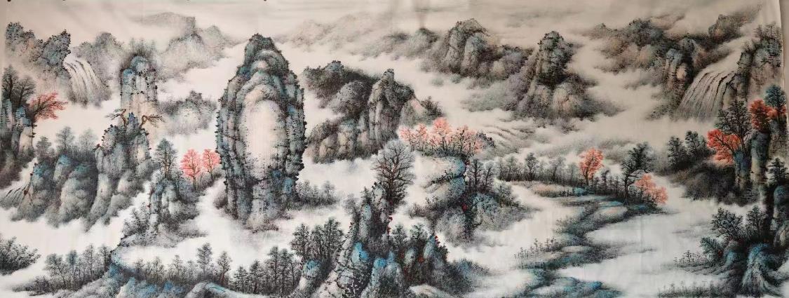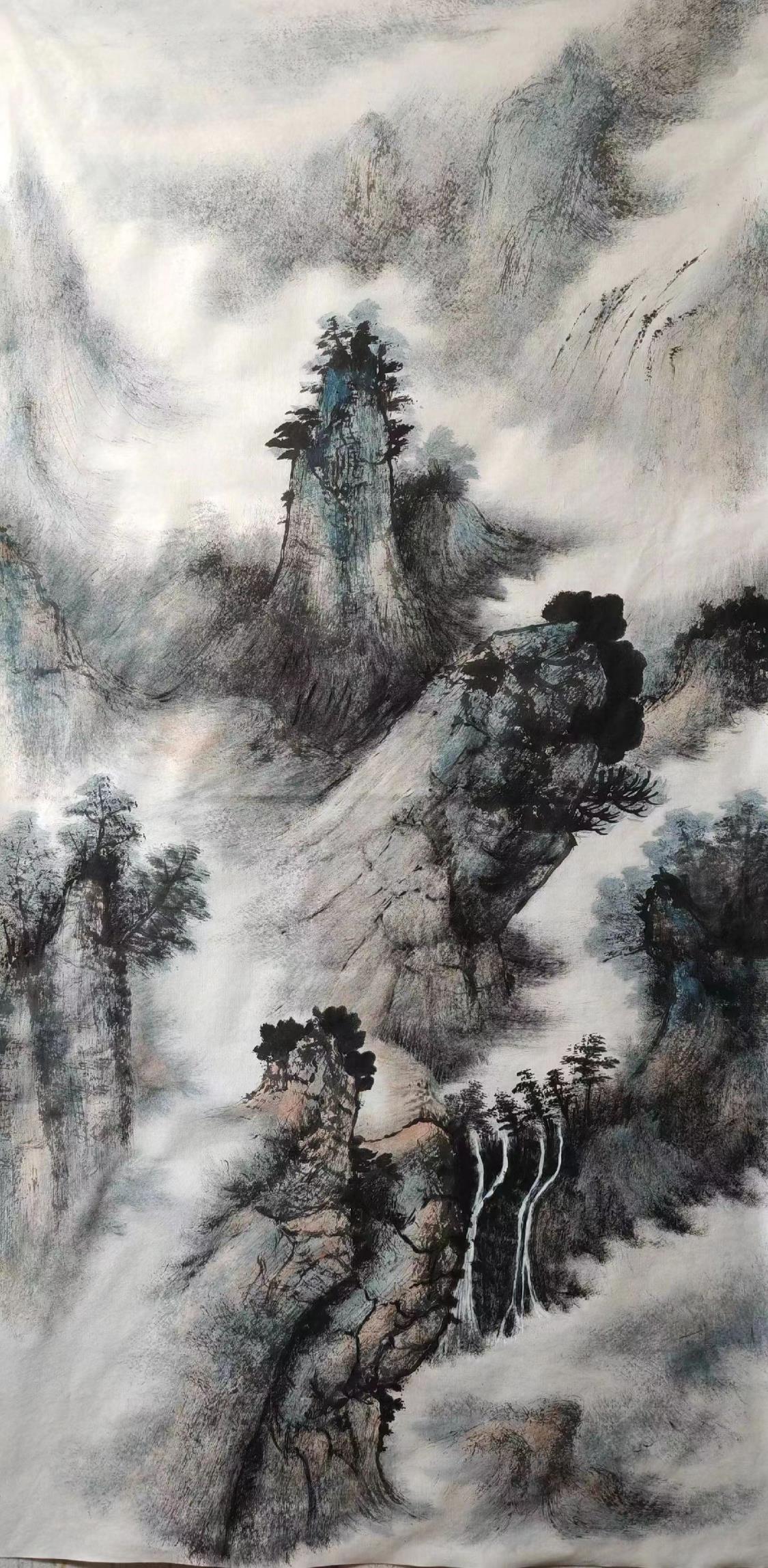 章国兴老师的作品展现了深厚的艺术造诣和独到的创作技巧。其笔下的山水作品,他都能熟练运笔墨之力,以简约的线条勾勒出景物的形态与神韵。他的画作中常常流淌着意境与气势,给观者带来一种宁静而美好的心灵享受。同时,他细腻的用墨和精湛的技巧也体现了他对细节的关照与对艺术品质的追求,这使得他的作品非常有收藏价值。