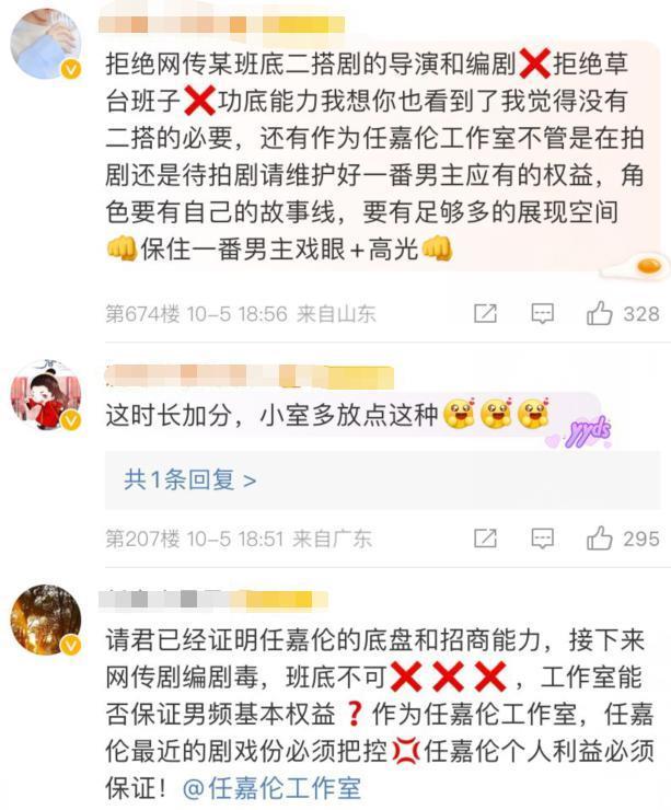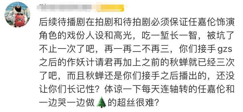 不过在任嘉伦还未点头说自己真的已经接了《武庚纪》这部剧时,任嘉伦的粉丝却有了很大的意见,这几日任嘉伦工作室微博下也都是粉丝们的诉求,大家只有一个目的,就是希望团队以后能保证任嘉伦一番男主的待遇。