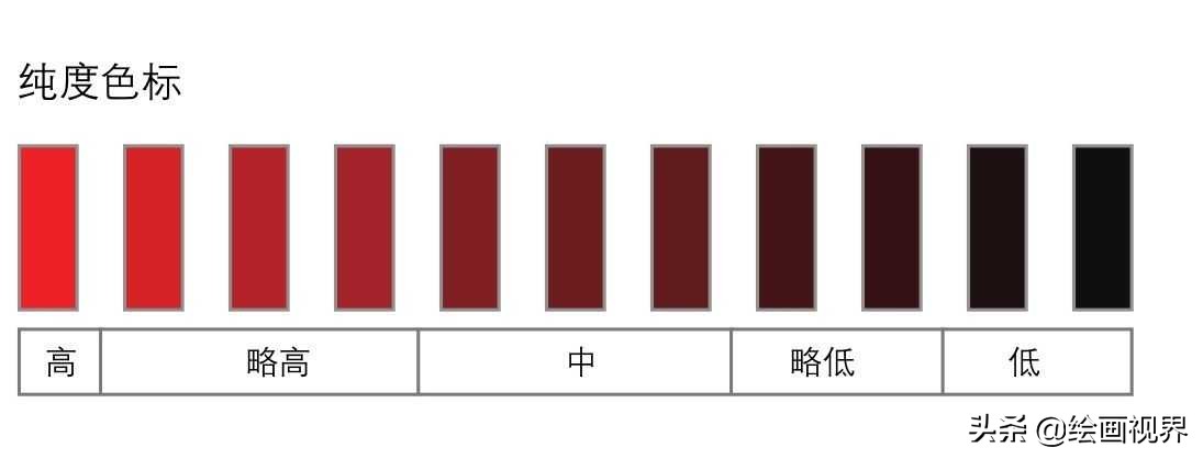 纯度也称饱和度,色彩的纯度强弱,是指色相感觉明确或含糊、鲜艳或混浊的程度。高纯度色相加白或黑,可以提高或减弱其明度,但都会降低它们的纯度。如加入中性灰色,也会降低色相纯度。在绘画中,大都是用两个或两个以上不同色相的颜料调和的复色。根据色环的色彩排列,相邻色相混合,纯度基本不变(如红黄相混合所得的橙色);对比色相混合,最易降低纯度,以至成为灰暗色彩。色彩的纯度变化,可以产生强弱不同的色相,而且可以使色彩产生韵味与美感。