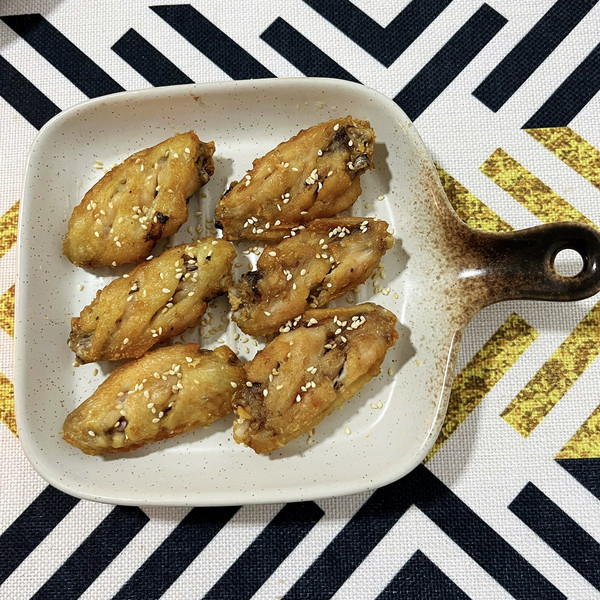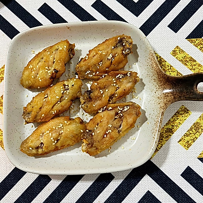 鸡翅中 300个 香蒜炸粉 30g 生姜 3片块 熟白芝麻 少许(可不要) 辣椒粉 少许(可不要)