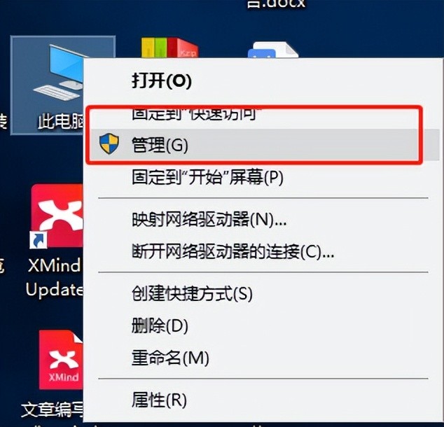 1、首先我们打开电脑,找到此电脑,右键点击它找到管理选项点开。
