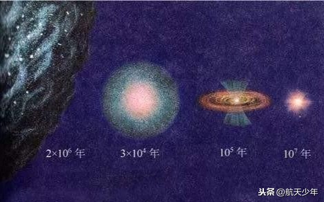 在接下来的5万年左右,恒星前的核心会收缩。这听起来可能是很长的时间,但从天文时间尺度来看,这被认为是一个相当快的过程,例如,与宇宙的年龄相比,宇宙的年龄几乎是140亿年。