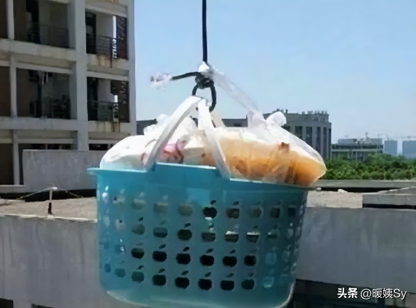 小婷会经常网购一些东西,快递员只能送到楼下,然后她从阳台递一根绳子下来,让快递员用绳子拴好,把东西吊上去,有时会给快递员20块钱小费。