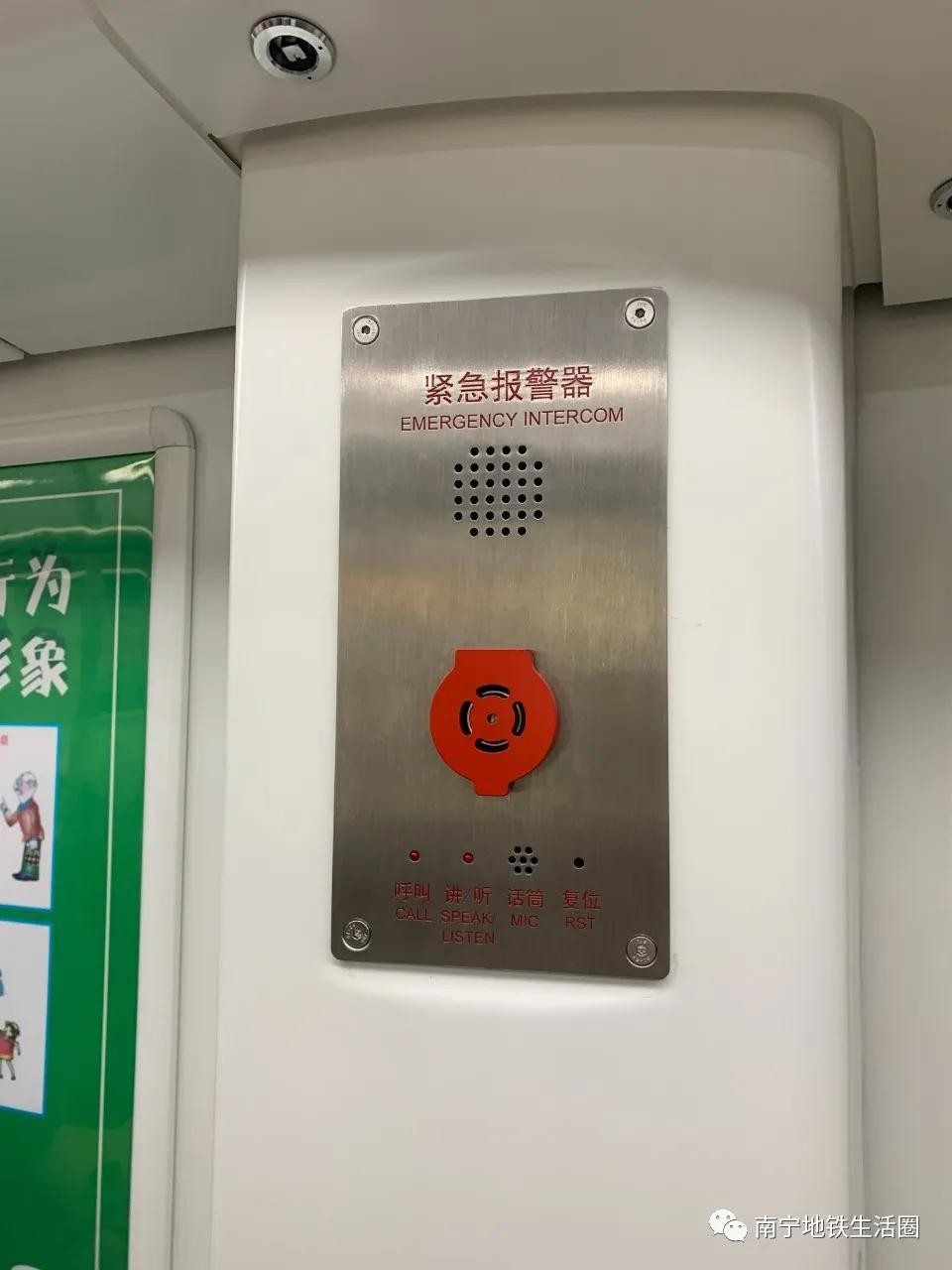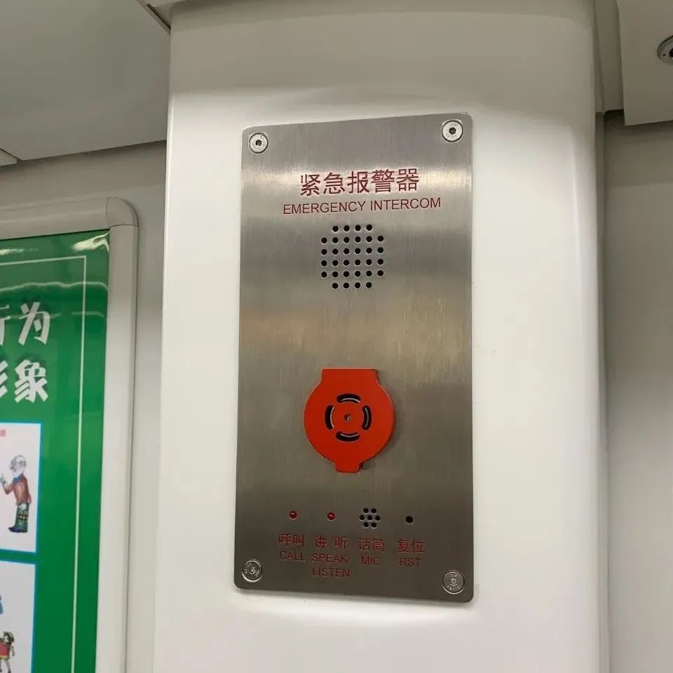 值得注意的是:在列车的车门一侧有明显标示的圆圆小按钮,这是乘客乘车紧急通话按钮,这也是PIS系统。当乘车期间遇到紧急情况,可以通过按压按钮的方式直接与行车司机通话,来获取乘车帮助。(正常运行情况下不能按哦~)