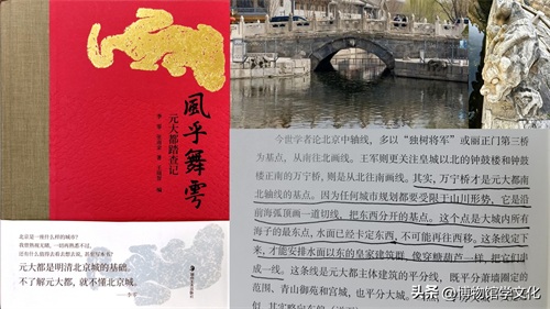 《风乎舞雩——元大都踏查记》不是科研著作,不能用“给科研插上文学的翅膀”,但可以说是“给文学植入了科研的严谨”,更是对“叙事与循证并重,科学与关爱同行”的完美诠释。李零和他的朋友们通过查辨文献、实地踏查、思考分析、讨论延伸等,按照“拼图、卡位”的考古学方法,挖掘出藏在元大都遗址中的众多老北京“宝藏”,既让我们感受到了历史的厚重,也为我今后“按书索点”再去实地查看有了更好的证据和规划。