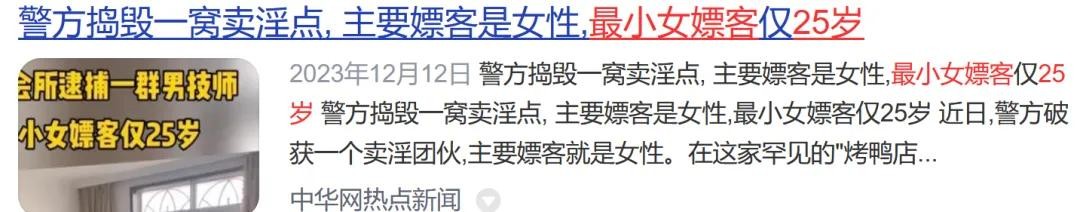 而让人意外的是,在众多女嫖客中,年纪最小的仅25岁。