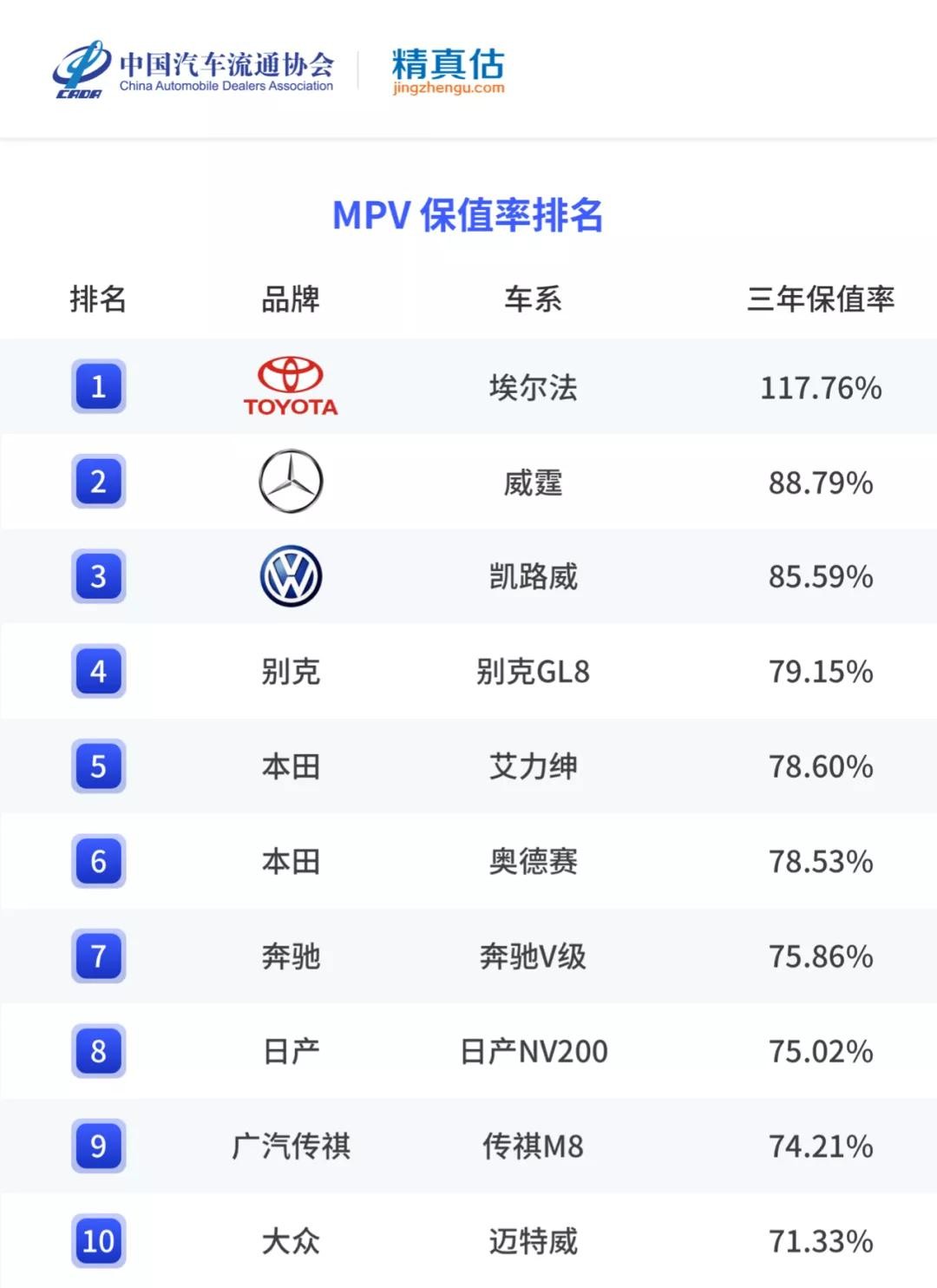 但不得不承认,最不可思议的还是官方售价80多万的丰田埃尔法,其二手车价格超过了车辆指导价,3年保值率仍为117.76%。