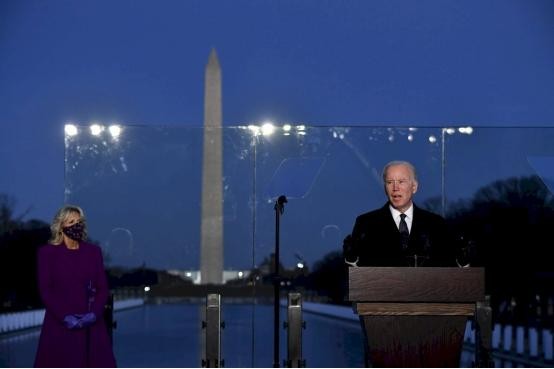 拜登(JoeBiden)在就职前夕于19日抵达华府,向美国逾40万名COVID-19死者致意