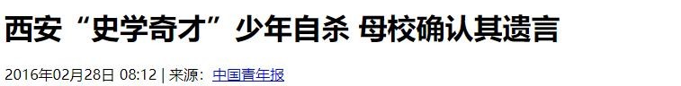 中国青年报2016年2月28日---西安“史学奇才”少年自杀 母校确认其遗言