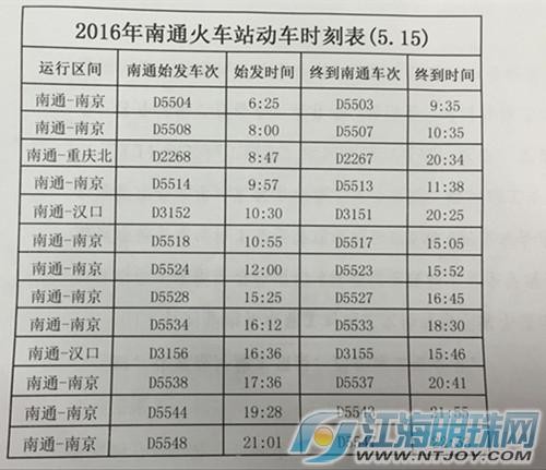 江海明珠网讯(记者 王艳霞)南通火车站今天对外发布新版列车时刻表。5月15号起,南通站将新开至南京、汉口、重庆北方向的动车,新开到洛阳、石家庄方向的普通快速列车。南通火车站始发列车将从目前的每天13趟增加到每天23趟。
