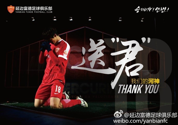 官方公告如下:经与河太均本人友好协商,延边富德足球俱乐部已与河太均本人达成解约协议,韩国籍球员河太均正式离队。河太均于2015年2月加盟延边富德,在中甲赛场上共打入26粒进球,一路攻城拔寨为延边升超立下汗马功劳,荣膺赛季最佳运动员及金靴奖。同时河太均受到了延边球迷热烈的爱戴,被亲切地称为“河神”,已然成为了延边足球的功勋人物。2016赛季,延边富德中超元年的主客场首粒进球都是由河神打进,河太均以3粒进球4次助攻帮助球队完成保级任务。他为延边足球所付出的每一滴汗水、每一次精彩射门、每一项功绩将载入延边足球史册,延边人民也会铭记于心。俱乐部感谢河太均为球队所做的贡献,衷心祝愿在今后的职业生涯中一帆风顺、前程美好