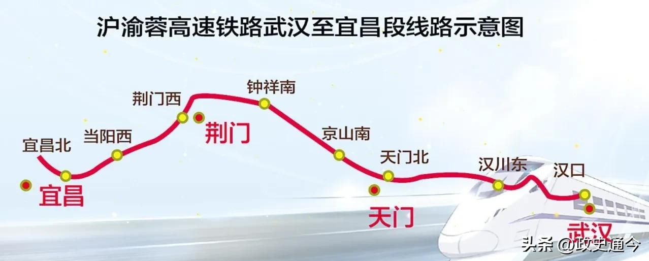 ·宜昌市设宜昌北站后出站向西南,止于荆门冲所,是湖北省以后重振补齐短板的四加二重大铁路项目之一。位于湖北省境内,正线全长三百一十三公里。设汉口、汉川东、天门北、荆山南、钟祥南、荆门西、当阳西、宜昌北八座车站。桥梁隧道占比百分之八十五,设计时速350公里,项目总投资约523亿元,建设总工期四年。