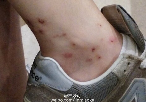 林妙可在微博中写到:“八一电影制片厂在四川拍电影《勇士》,我也在其中,小咬、蚊子毒性很大,这是现场照的照片,今天在宜宾,不知道这里竹林又增添什么毒虫,我一直涂药,依然被咬许多。第一张是我的腿,我们在坚持,我们一起坚持。”