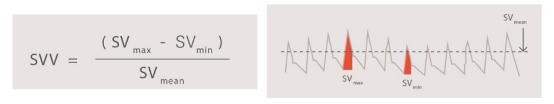 每搏量变异度(SVV)是一种优化前负荷管理的新型、动态参数,常用于监测机械通气患者的容量状态及预测机体对液体治疗的反应性,及围手术期患者的目标导向治疗(动态指标)。SVV预测液体反应的灵敏度≥80%、特异性78%~84%。