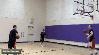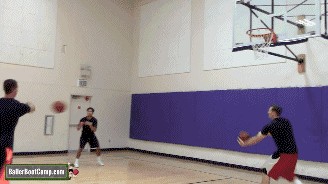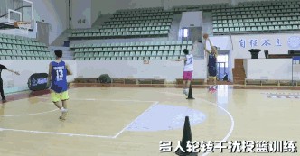 五、多人轮转干扰投篮:选择一个定点,一人捡球,一人投篮,一人干扰,一样出手后就轮换,对于今后面对防守者干扰投篮有很大作用哦。