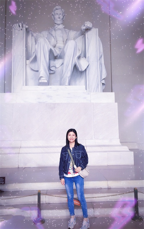 离开白宫,驱车来到华盛顿必游之地——林肯纪念堂。我们沿着高高的台阶拾级而上,步入空旷而挑高的纪念堂,顿时映入眼帘的就是高达19英尺的林肯雕像,他神情肃穆地凝视着前方的反思湖,据说他的表情还会在一天不同时间内发生变化。