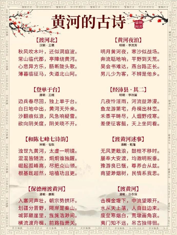 有关黄河的诗词,古诗里的黄河大气磅礴。